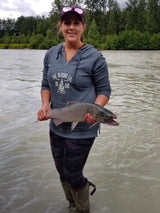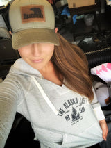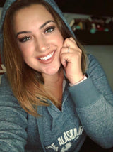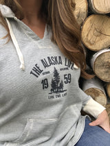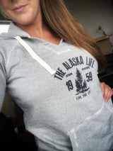 This hoodie has a nautical feel with an Alaskan flare. Our stylish v-neck hoodie is made of a terry type material and is the perfect mix of both comfort and stretch.